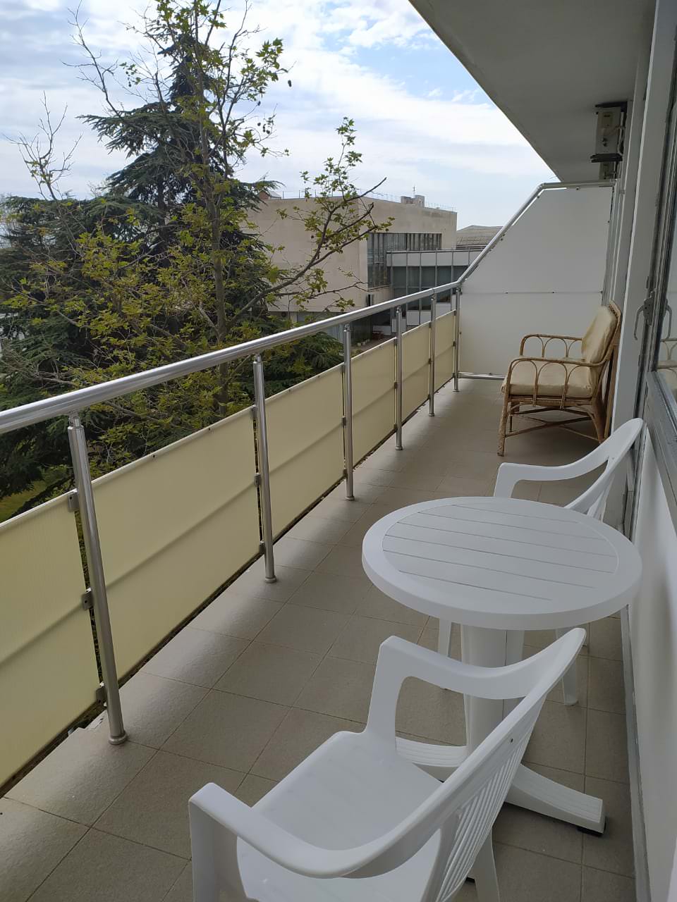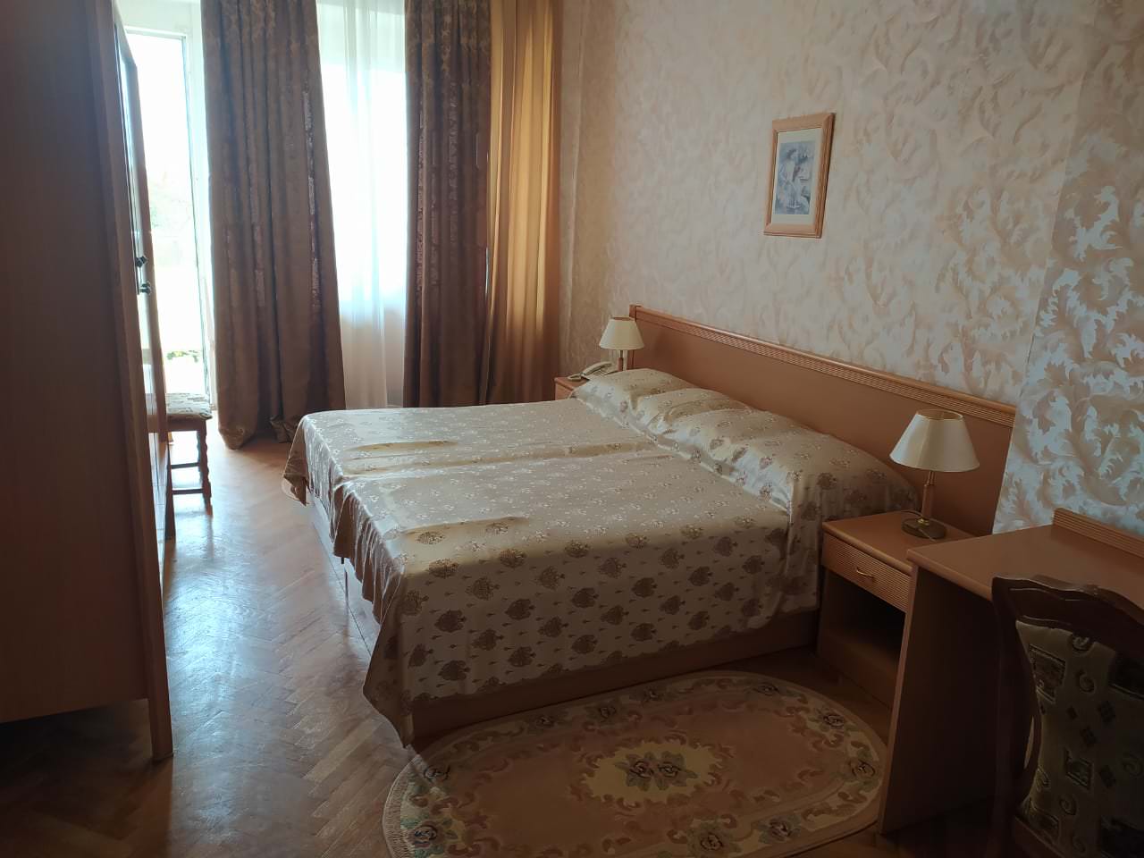 Площадь номера - 42,6 кв.м. 2 осн. места. 2 доп. места. Балкон. Мебель: диван, зеркало, кресло, кровати односпальные, прикроватные тумбочки, стол, стулья, шкаф. Оборудование: кондиционер, набор посуды, телевизор, телефон, электрочайник. Санузел: биде, с ванной, туалетные принадлежности, фен, халат. Сервис: Wi-Fi бесплатно, смена полотенец, смена постельного белья, уборка номера, услуги внутренней телефонной связи.