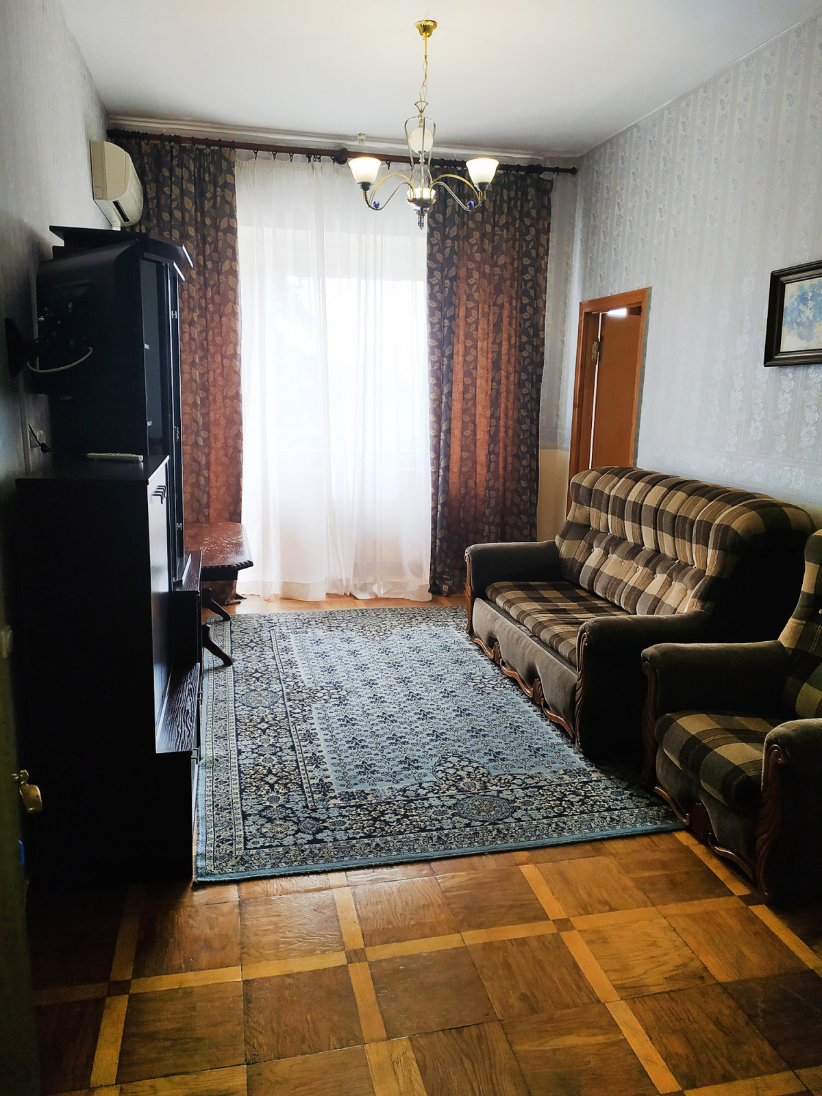 2 осн. места. 2 доп. места. Балкон. Мебель: диван раскладной, зеркало, кресло, кровати односпальные, прикроватные тумбочки, стол, стулья, шкаф. Оборудование: кондиционер, набор посуды, телевизор, телефон, холодильник, электрочайник. Санузел: с ванной, туалетные принадлежности, фен, халат. Сервис: Wi-Fi бесплатно, смена полотенец, смена постельного белья, уборка номера, услуги внутренней телефонной связи.