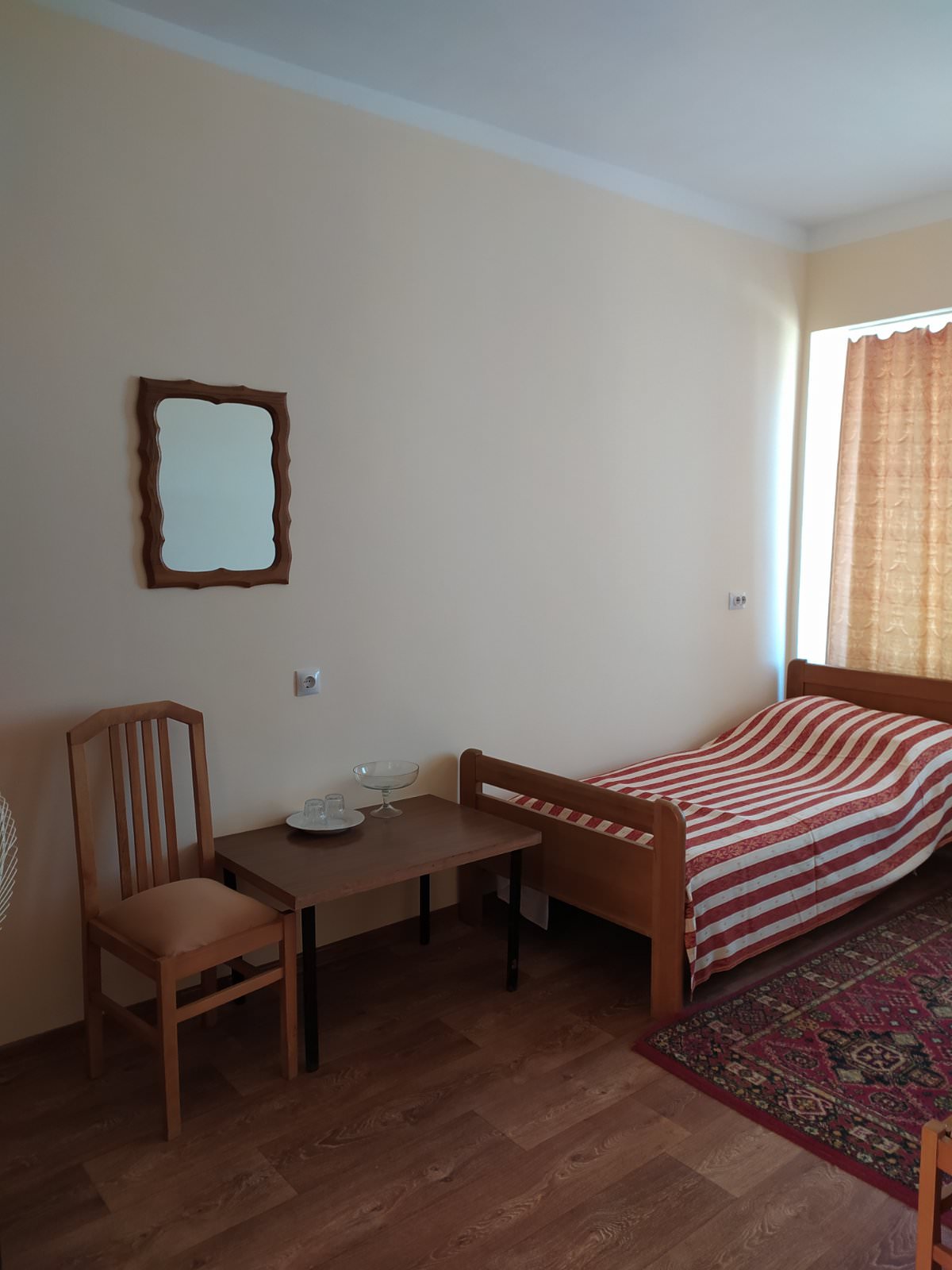 2 осн. места. Мебель: вешалка, зеркало, кровати односпальные, прикроватные тумбочки, стол, стул, тумба багажная, шкаф. Оборудование: кондиционер, набор посуды, телевизор, телефон, холодильник, электрочайник. Санузел: с душем, фен. Сервис: Wi-Fi бесплатно, смена полотенец, смена постельного белья, уборка номера, услуги внутренней телефонной связи.